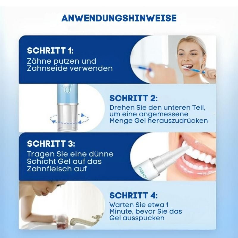 Spüren Sie, wie die Gesundheit Ihres Zahnfleisches schnell zurückkehrt. Entdecken Sie die Schönheit Ihres Lächelns neu – schnell und mühelos.